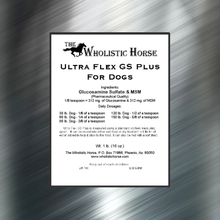 Ultra Flex GS Plus contains only the Highest Quality Ingredients Available with absolutely no fillers, additives, or unpleasant taste making it easy to feed and completely absorbed for fast results! Each serving of Ultra Flex GS Plus contains 50% Glucosamine Sulfate and 50% Premium MSM. Like Ultra Flex GS, the serving size depends on the dogs weight. For example the serving for a 60 lb. dog will contain 625 mg. Glucosamine Sulfate and 625 mg. MSM. It mixes easily with any moist food or soft treat and can also be added to dry food with a little bit of water added to help it stick. *Please note that a one pound bag of Ultra Flex GS Plus will last a 60 lb. dog "180" days!