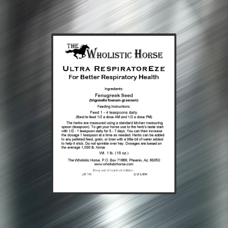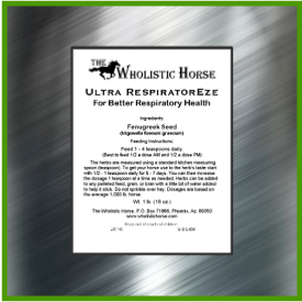 Ultra RespiratorEze is a Premium Quality Herbal Supplement for Better Respiratory Health in Horses. It comes in a 1 lb. bag and will last about three months when fed daily and longer when fed only seasonally.