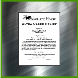 Ultra Ulcer Relief contains premium quality slippery elm, the most Soothing Herb for Stomach Ulcers and the Entire Gastro-Intestinal Tract! Sadly, more than 50% of Performance Horses suffer from Gastric Ulcers and Ulcerations of the Intestinal Tract. Symptoms of Ulcers can include Poor Performance, Irritability, Girthiness, Mild Recurrent Colic, Poor Appetite, Weight Loss, and a Dull Coat. Horses in Intensive Training are especially at risk to develop ulcers since Stress, Intense Exercise, Extensive Trailering, and High Concentrate Diets increase acid production which irritates the stomach lining. Ultra Ulcer Relief soothes and protects the inflamed mucous membranes of the stomach, neutralizes excess stomach acids, and can also relieve diarrhea and colitis in adult horses and foals. Ultra Ulcer Relief can be fed daily as a preventative and protective measure and really is a must have product for every performance barn.